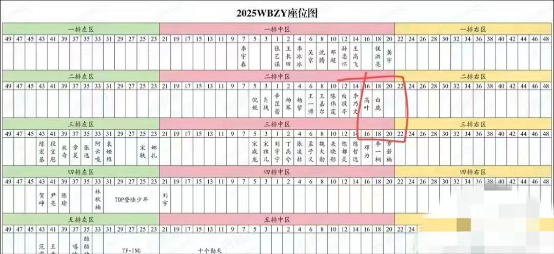 早在活动开始前,官方就私下敲定了第二排核心位置的安排: